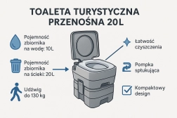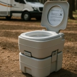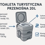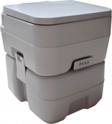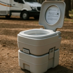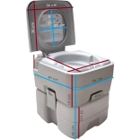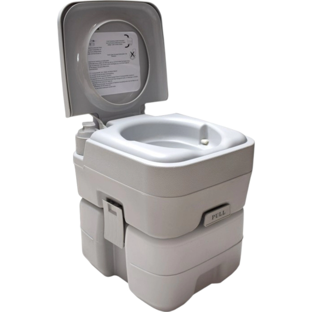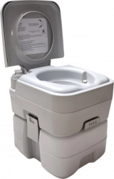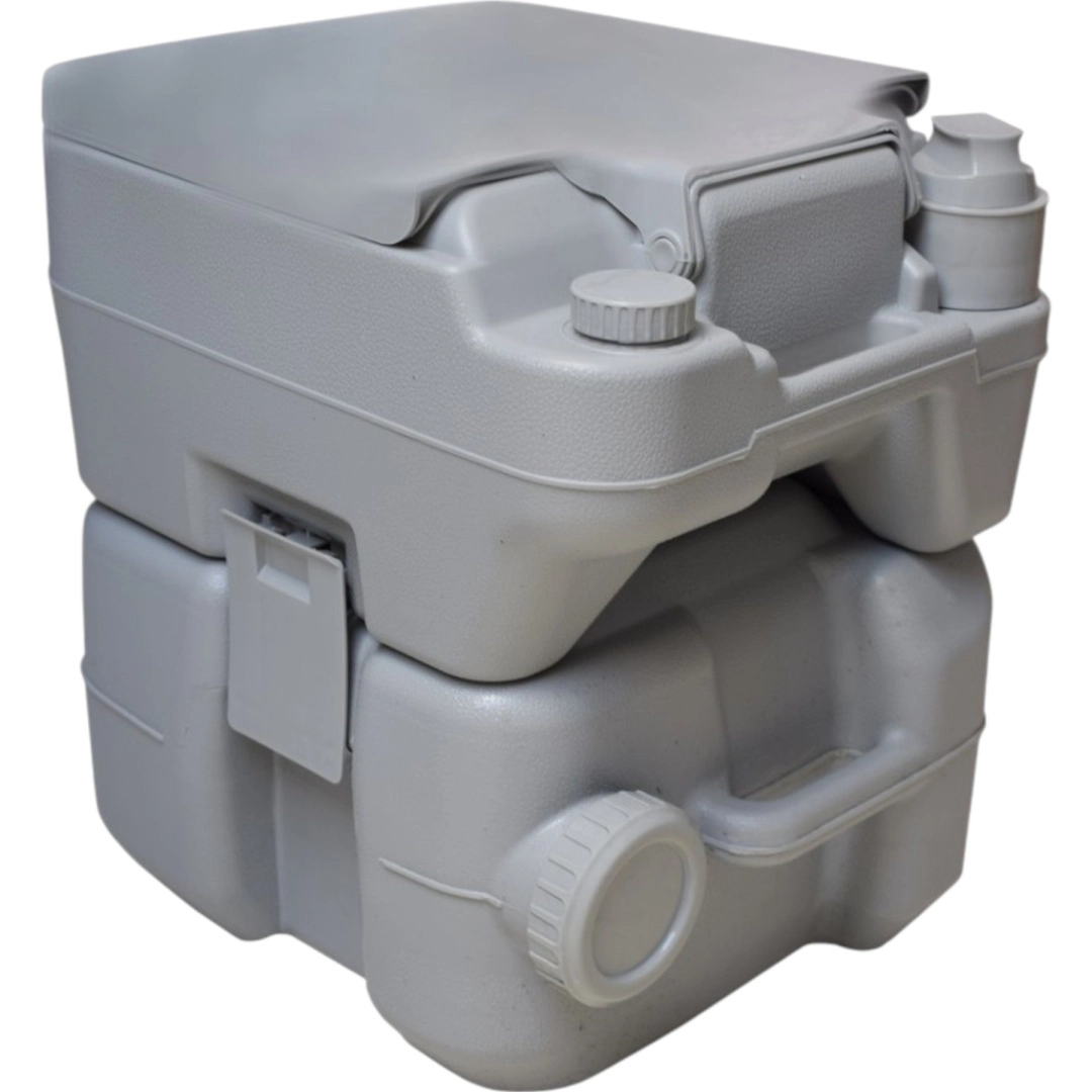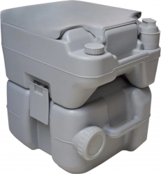 Užijte si svobodu cestování bez kompromisů. Přenosná toaleta s čerstvou vodou 10 l a odpadní nádrží 20 l nabízí komfort domácí toalety i tam, kde není infrastruktura. Stabilní dvoudílné řešení se spojuje pomocí bočních přezek, je těsné a snadno přenosné. Ideální pro kempování, karavan, loď, zahradu, stavbu či chatu.