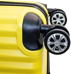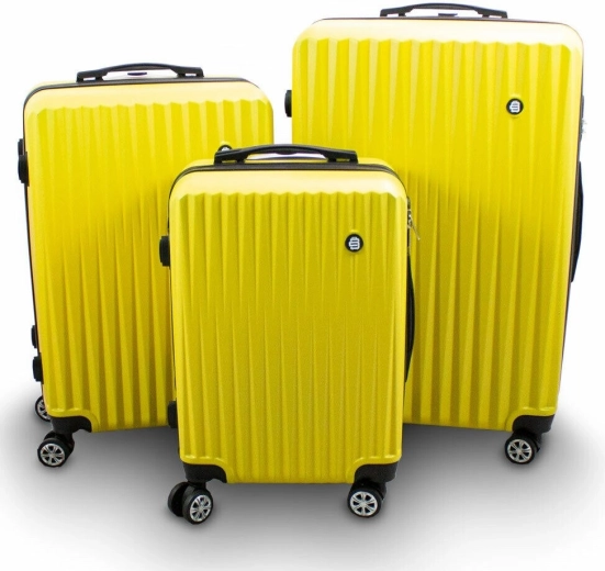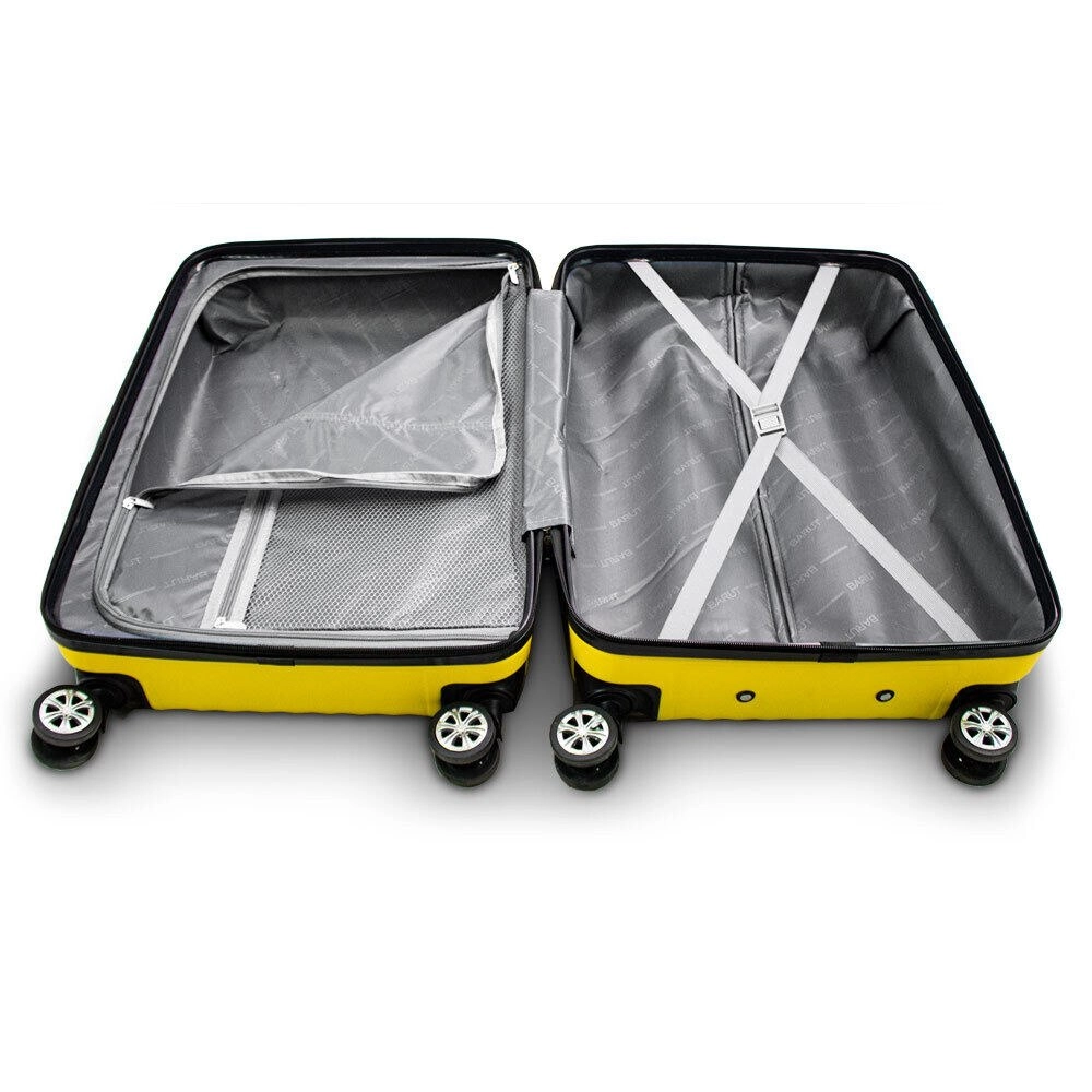 Stylová sada skořepinových kufrů BARUT v zářivě žluté barvě nabízí odolnou tvrdou skořepinu, otočná kolečka 360° pro hladkou manipulaci, integrovaný číselný zámek a ergonomické teleskopické madlo. Dvojité úchyty usnadní přenášení a promyšlený interiér s přepážkou a křížovými popruhy udrží pořádek během celé cesty.