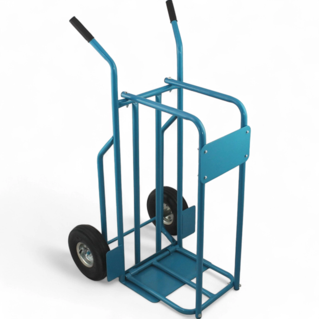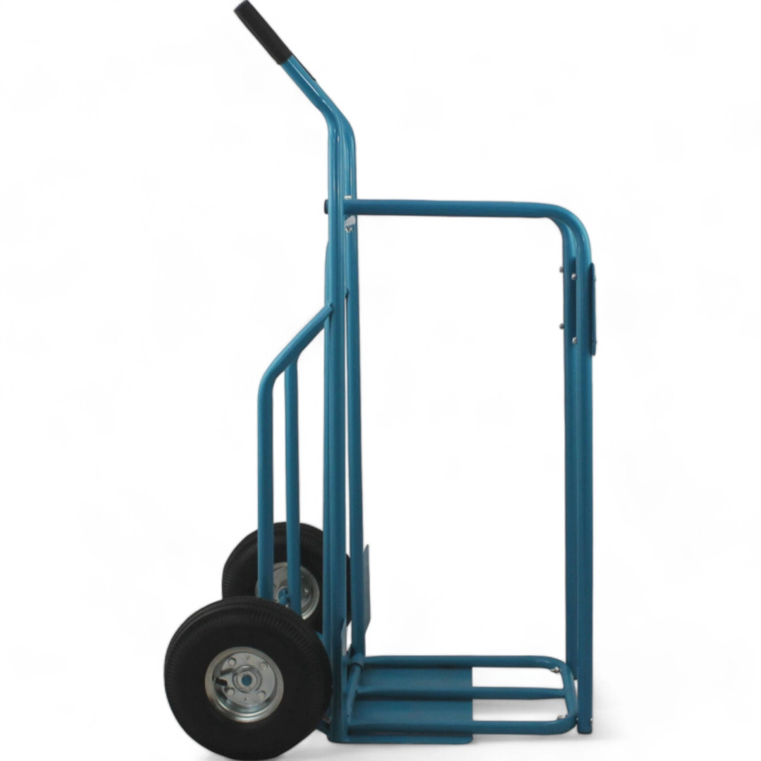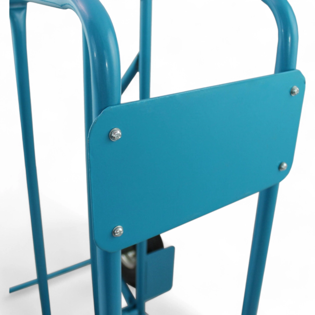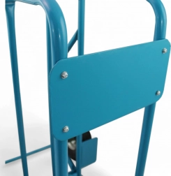 Pevná ocelová konstrukce s výztuhami a ergonomickými rukojeťmi poskytuje bezpečné manévrování a dlouhou životnost při každodenním používání.