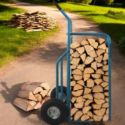 Univerzální přepravní vozík 2 v 1 pro dřevo i běžné náklady usnadní práci doma, na zahradě i ve skladu. Má pevnou ocelovou konstrukci, nosnost 100 kg a pneumatiková kola pro plynulou jízdu i na nerovném terénu. Díky hluboké kleci a praktické šufli bezpečně odvezete špalky, krabice i pytle bez námahy.
