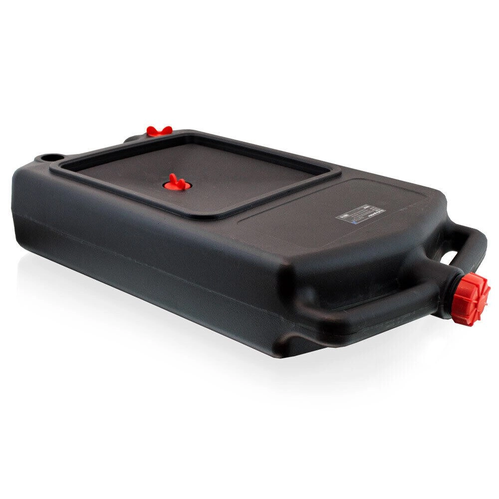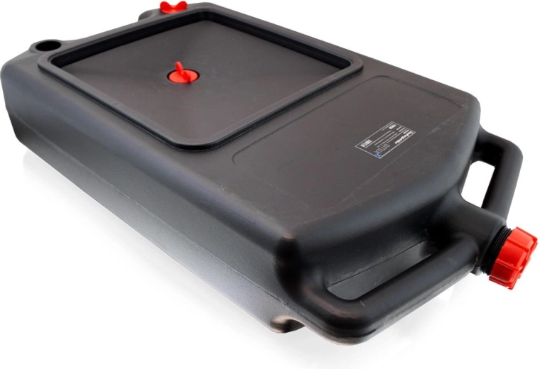 Tato odolná plastová nádoba je navržena pro snadné zachytávání a přepravu použitého motorového oleje i dalších automobilových kapalin. Nízká výška a široká záchytná plocha usnadňují vypouštění bez rozlití, zatímco šroubovací víčka s těsněním brání úniku při přenášení.