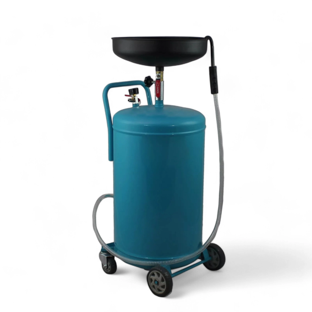 Tato mobilní zlewárna oleje je navržena pro čisté a efektivní odsávání a sběr použitého motorového oleje přímo z vozidel. Velká záchytná miska o průměru 40 cm s plynule nastavitelnou výškou 102–164 cm umožní pohodlnou práci u osobních i užitkových vozů. Připojení ke stlačenému vzduchu zajišťuje rychlé a kontrolované vyprázdnění nádrže bez nepořádku.