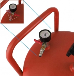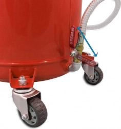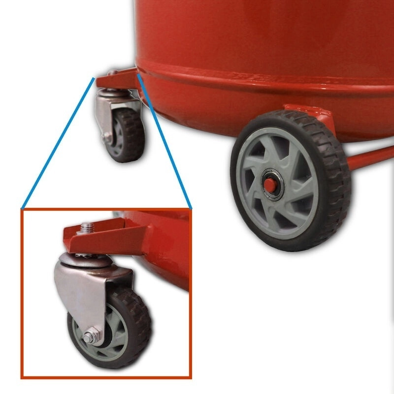 Podvozek se 2 pevnými koly a 2 otočnými kolečky umožňuje snadné manévrování v dílně. Masivní ocelová nádoba, přehledné ovládání a bezpečnostní přetlakový ventil přinášejí jistotu a dlouhou životnost při každodenním použití.