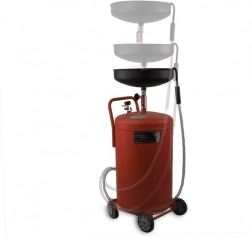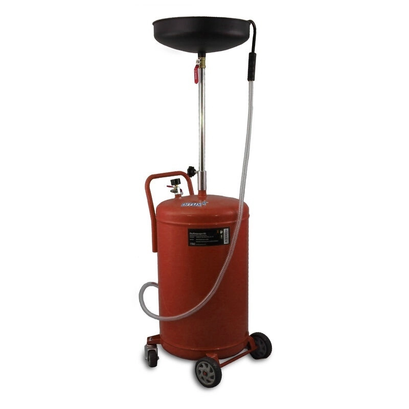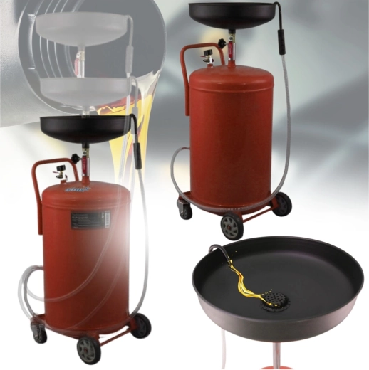 Profesionální mobilní záchytná nádoba na olej o objemu 80 l se snadným vyprazdňováním pomocí stlačeného vzduchu. Díky výškově nastavitelnému trychtýři 100–160 cm, robustní ocelové konstrukci a podvozku se 4 koly je ideální pro autoservisy i domácí dílny. Rychlé vyprazdňování, velká kapacita, pohyblivost a bezpečný provoz v jednom.