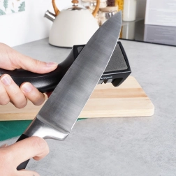 Brousek je lehký, odolný a snadno se používá i skladuje – vejde se do každé kuchyňské zásuvky. Hodí se pro běžné rovné kuchyňské nože, například kuchařské, univerzální či porcovací nože z nerezové nebo povlakované oceli.