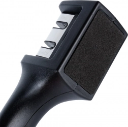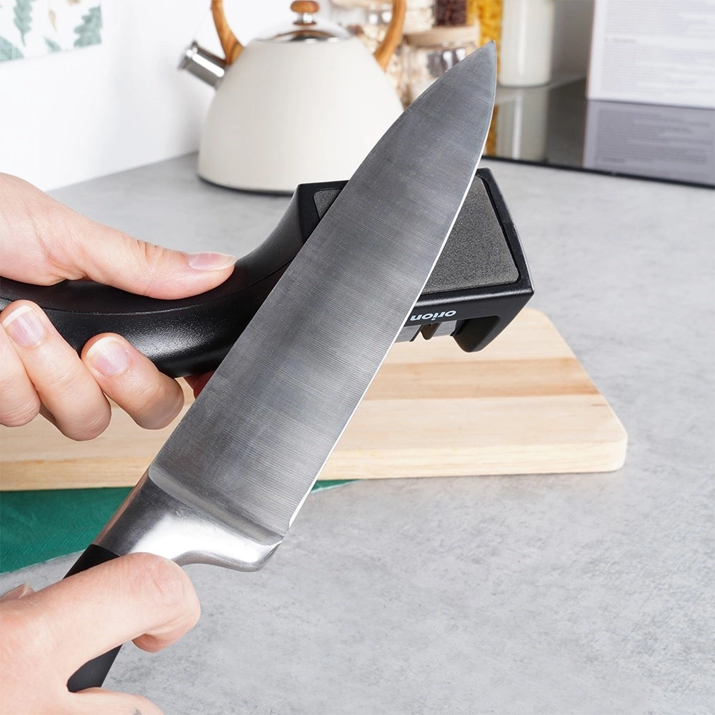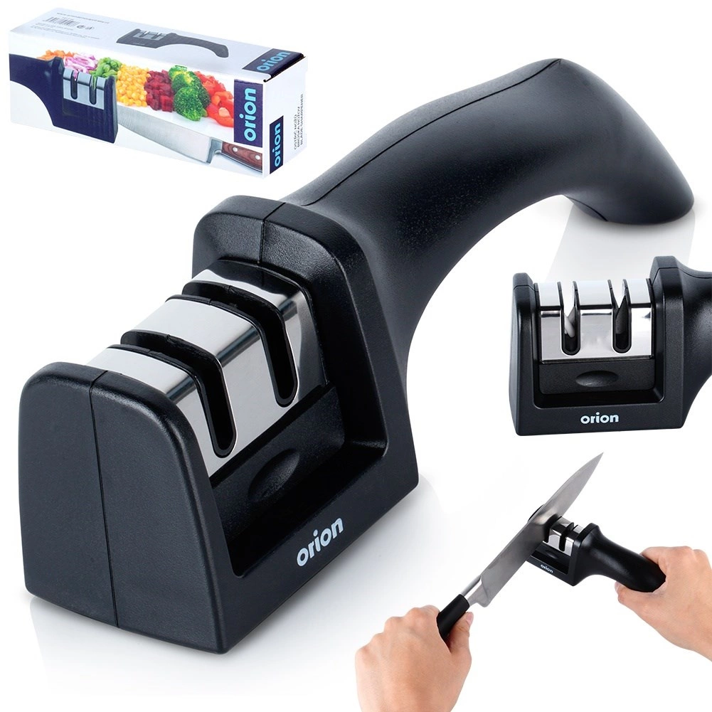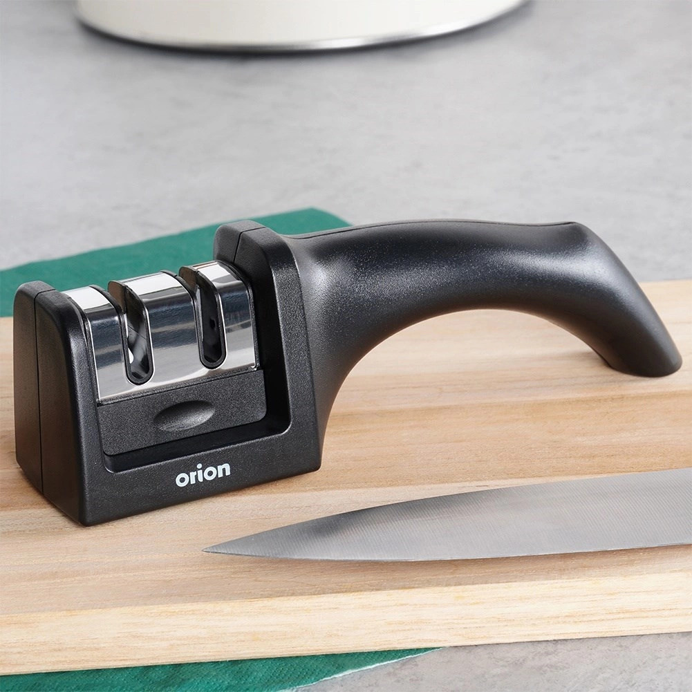 Dopřejte svým nožům precizní péči s dvoufázovým brouskem ORION. První stupeň s karbidovou hlavicí rychle obnoví otupené ostří, druhý stupeň s keramickou vložkou jej jemně vyhladí a vyleští pro dlouhotrvající ostrost. Stabilní protiskluzová základna a tvarovaná rukojeť zajišťují bezpečné držení i při větším tlaku.