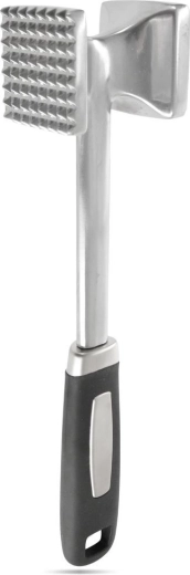 Robustní dvoustanný tlouček na maso z kvalitního hliníku vyniká univerzálním využitím v každé kuchyni. Hladká strana rychle zploští řízky na rovnoměrnou tloušťku pro stejnoměrné smažení či pečení, zatímco strana s pyramidovými hroty účinně zjemní a prokrevní vlákninu pro lepší vstřebání marinád a koření.