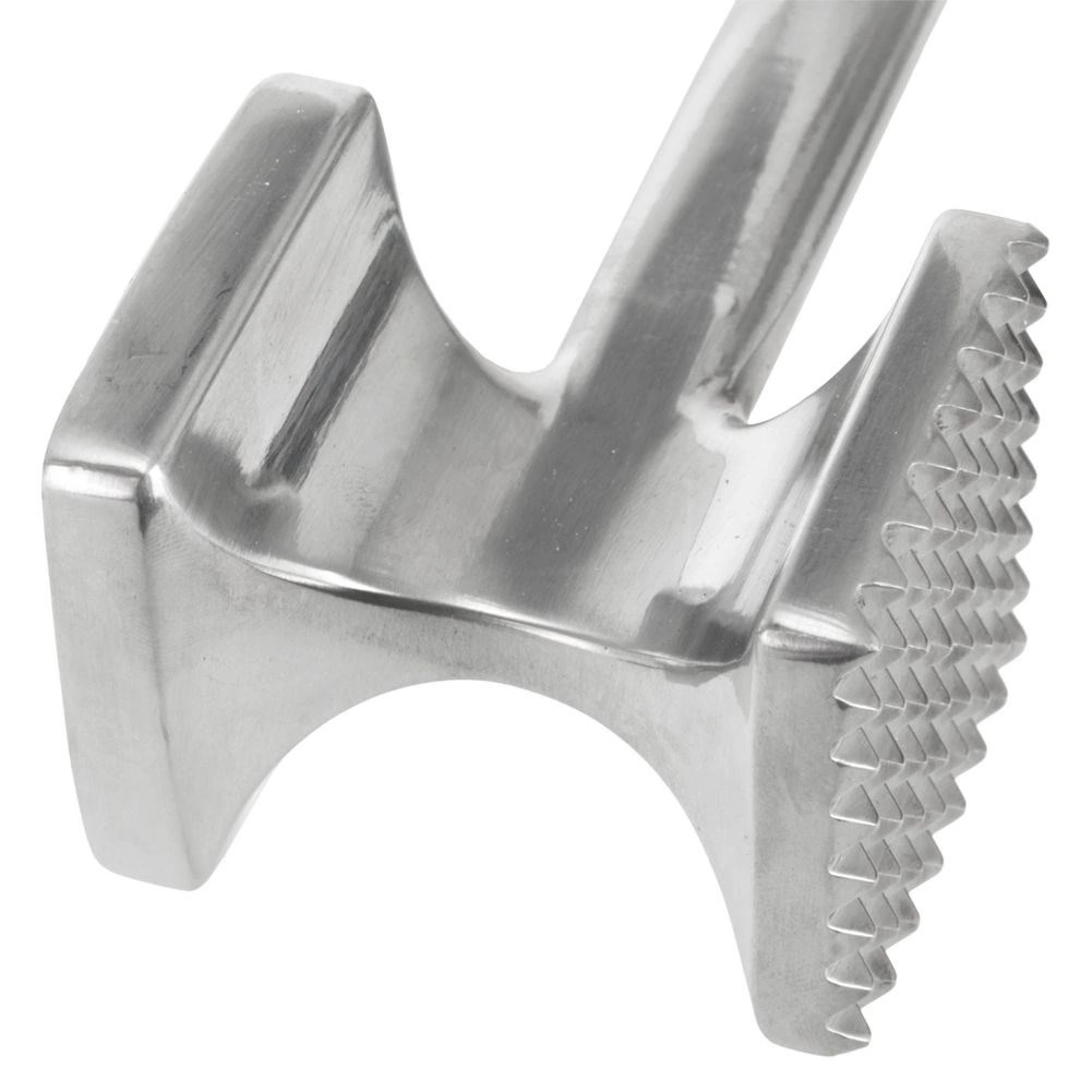Díky ergonomické, protiskluzové rukojeti se s ním pracuje pohodlně a bezpečně. Praktické očko umožní zavěšení na lištu, případně snadné uložení do zásuvky. Nástroj je odolný a trvanlivý, vhodný nejen na vepřové, hovězí, drůbež či ryby, ale i pro drcení ořechů a koření. Pro dlouhou životnost se doporučuje ruční mytí.