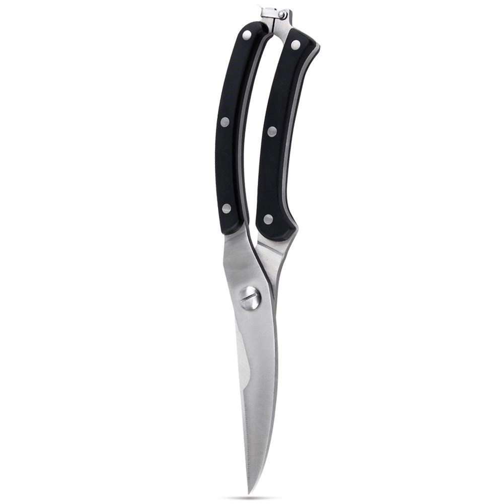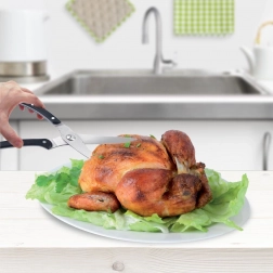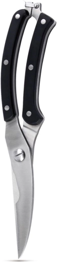 Odolné kuchyňské nůžky na drůbež z nerezové oceli o délce 24,5 cm usnadní krájení syrového i pečeného masa. Mají ergonomické rukojeti, ostré nerezové čepele, bezpečnostní zámek pro snadné a bezpečné uložení a pevnou konstrukci pro dlouhou životnost.