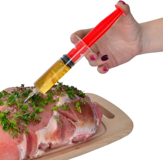 Stříkačka je vyrobena z bezpečných materiálů vhodných pro styk s potravinami. Píst se dodává v různých barvách (černá, červená, bílá) – odesíláme náhodně. Ideální pro pečení, grilování, pečení šunky i domácí uzení, kde zkrátí dobu marinování a zlepší prosolení.