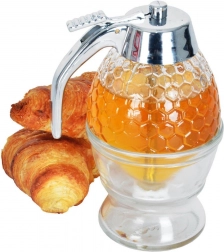 Užijte si med, javorový sirup nebo čokoládovou polevu bez nepořádku. Dávkovač s voštinovou texturou je vyroben z odolného skla a doplněn spouští pro plynulé, rovnoměrné vytékání spodním výpustným otvorem. Podstavec slouží jako odkapová miska, takže stůl zůstane čistý.