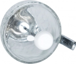 Voštinová textura skla a stříbrné víčko z něj dělají stylový doplněk stolu. Podstavec zachytí kapky a drží dávkovač stabilně.