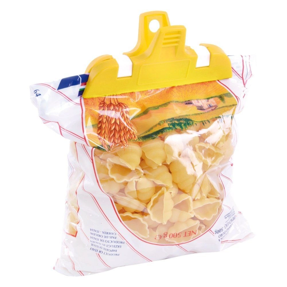 Sada 3 klipsů na uzavírání sáčků je nepostradatelným pomocníkem do každé kuchyně i spíže. Klipsy v žluté barvě jsou vyrobeny z kvalitního, odolného plastu a díky kompaktním rozměrům (7,5 × 4 × 4 cm) se pohodlně používají a skladují. Pomáhají udržet pořádek, zabraňují vysypání obsahu a chrání potraviny před zvlhnutím.