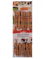 Stylové bambusové hůlky na sushi o délce 22,5 cm v balení 10 kusů (5 párů) pro pohodlné servírování asijských pokrmů. Jsou lehké, odolné a příjemné do ruky, s dekorovaným povrchem a impregnovaným dřevem, které neabsorbuje vlhkost ani pachy. Ideální pro sushi, ramen, nudle i závitky a přesné uchopení delikátních soust.