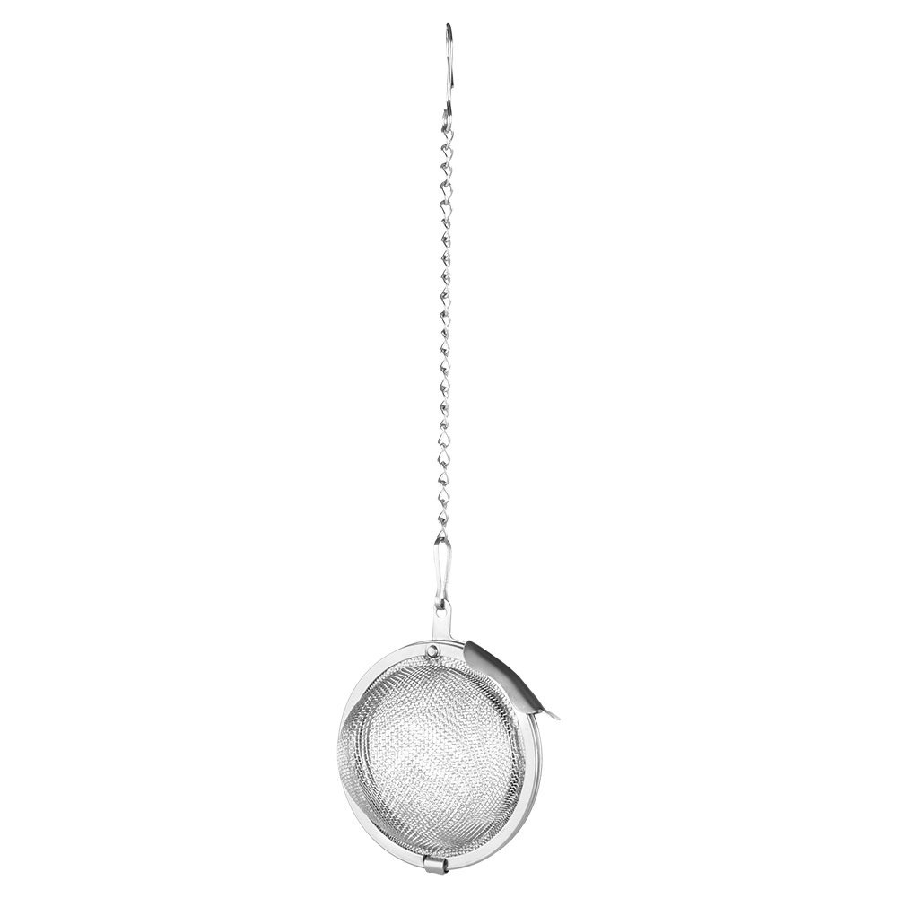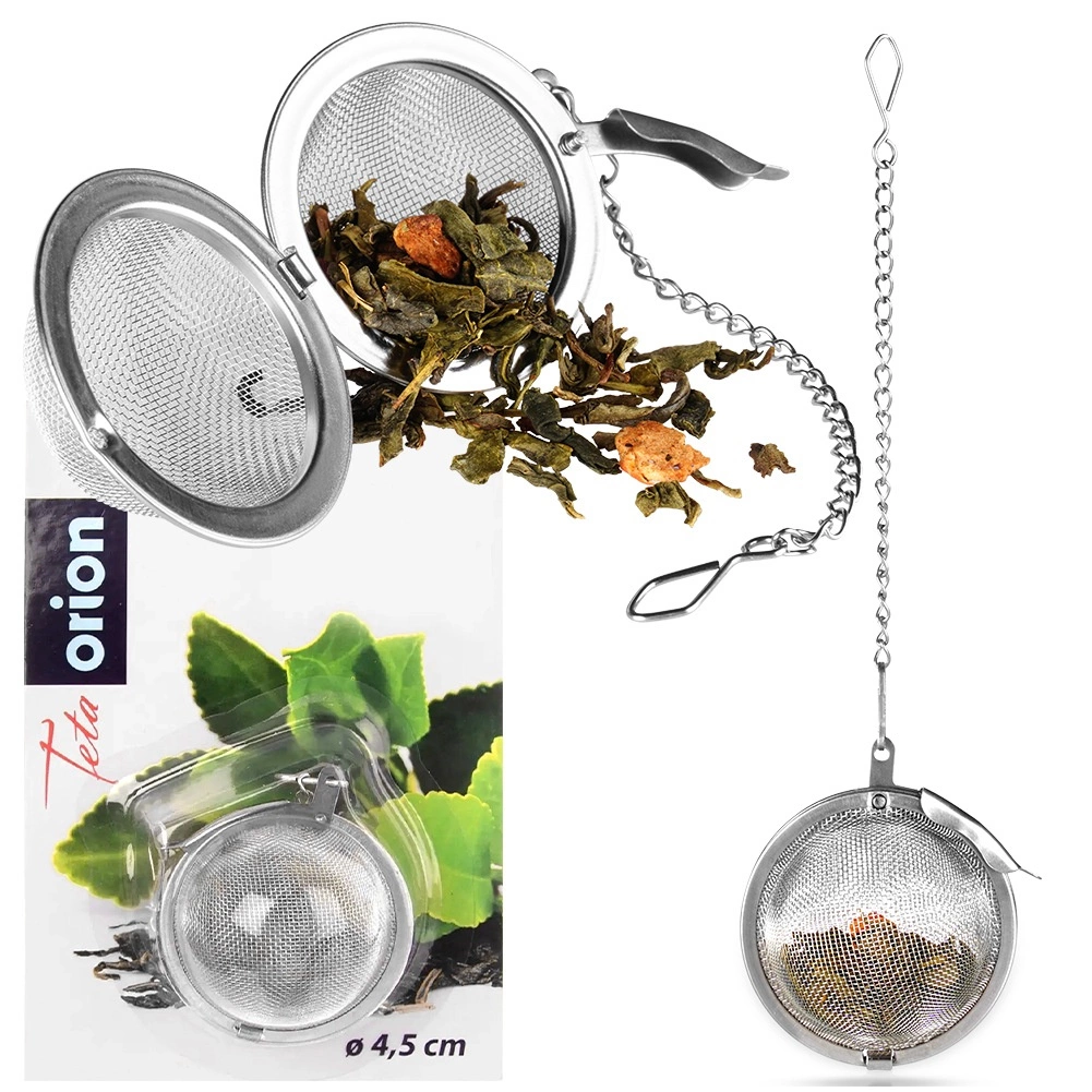 Kompaktní nerezové sítko na sypaný čaj a bylinky o průměru 4,5 cm s praktickým řetízkem a háčkem. Jemná síťovina spolehlivě zachytí lístky a koření, takže nápoj zůstane čistý a bez usazenin. Odolné nerezové provedení je vhodné do myčky a bezpečné zavírání brání vysypání obsahu.