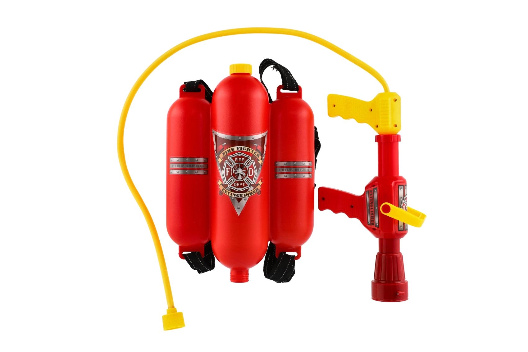 Tato funkční hasičská vodní pistole s plastovým zásobníkem na záda promění každé odpoledne v napínavou záchrannou akci. Stačí naplnit zásobník vodou, přišroubovat hadici a nastavit sílu proudu – a hasení fiktivních požárů může začít. Ideální pro hru na zahradě, na hřišti i u vody.