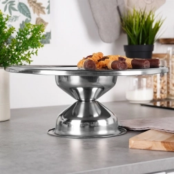 Tento nerezový dortový podnos na stabilní nožce přináší profesionální vzhled a praktické využití do každé kuchyně i na slavnostní tabuli. Díky průměru 33 cm pohodlně pojme dorty, koláče i výběr mini zákusků, zatímco výška 13 cm dodá vašim výtvorům efektivní prezentaci.