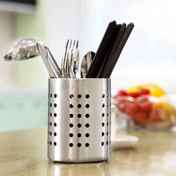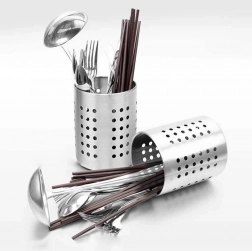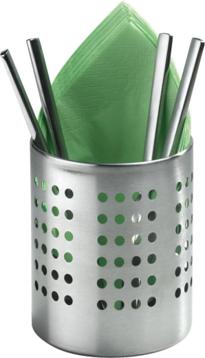 Udržujte pořádek na kuchyňské lince s tímto pevným a elegantním stojanem z nerezové oceli. Perforovaná konstrukce podporuje rychlé schnutí a brání hromadění vlhkosti, takže je ideální pro odkládání umytých příborů i kuchyňských nástrojů. Snadno se čistí a díky širokému otvoru umožňuje pohodlné ukládání větších i menších pomůcek.