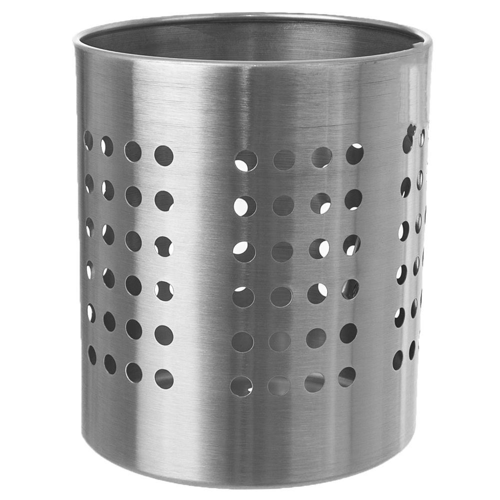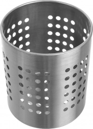 Praktický nerezový stojan na příbory a kuchyňské náčiní s průměrem 12 cm a výškou 13 cm. Díky perforovaným otvorům zajišťuje odvod vody a cirkulaci vzduchu, takže příbory rychleji schnou a zůstávají hygienicky čisté. Odolná nerezová ocel ve stříbrné barvě, univerzální využití jako odkapávač i organizér a klasický design, který zapadne do každé kuchyně.