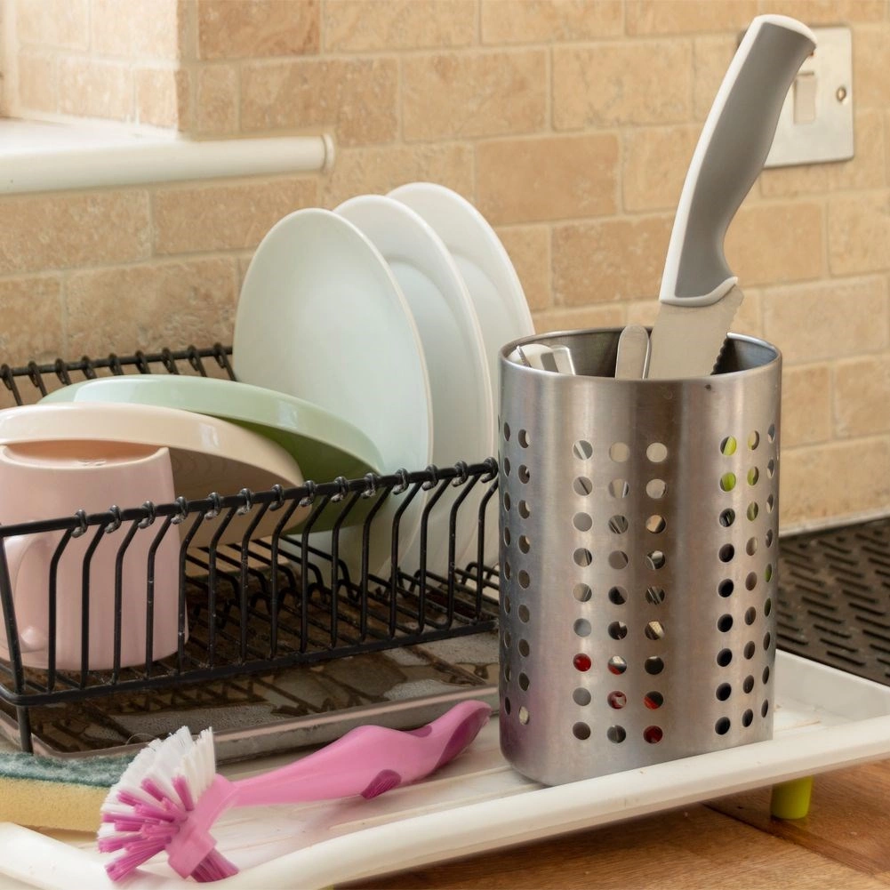 Řady kulatých otvorů zajišťují odvod vody a cirkulaci vzduchu, takže příbory a náčiní zůstávají suché a připravené k použití.