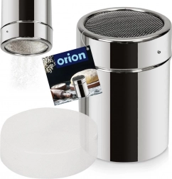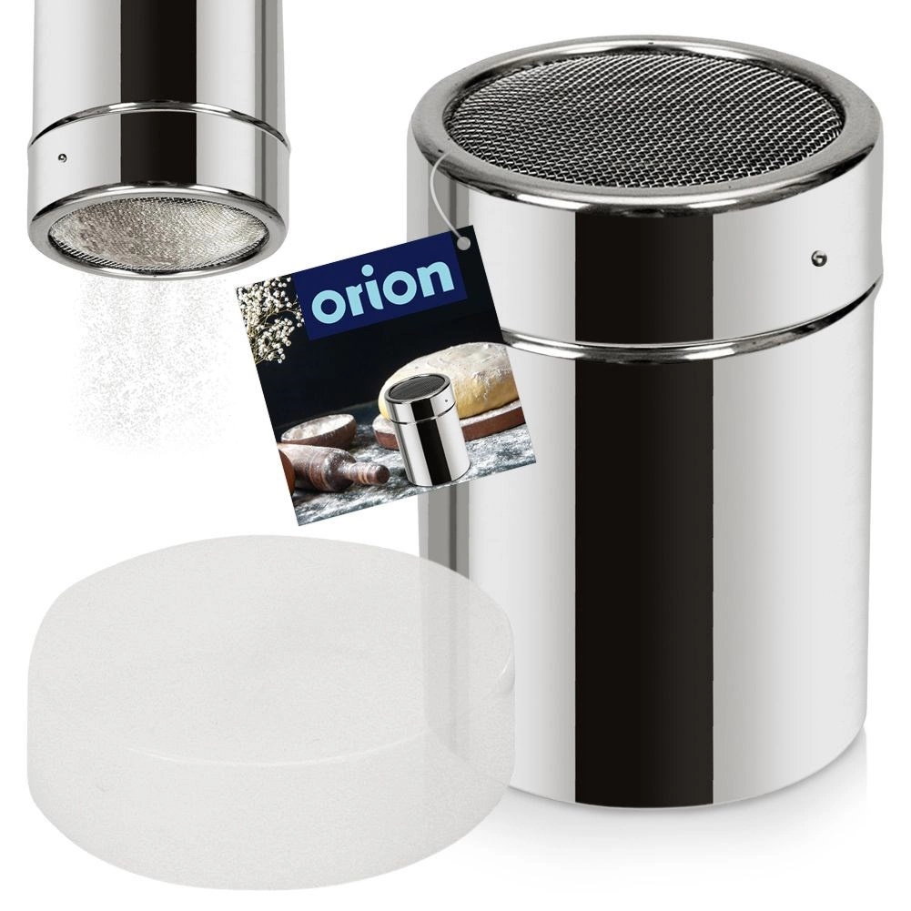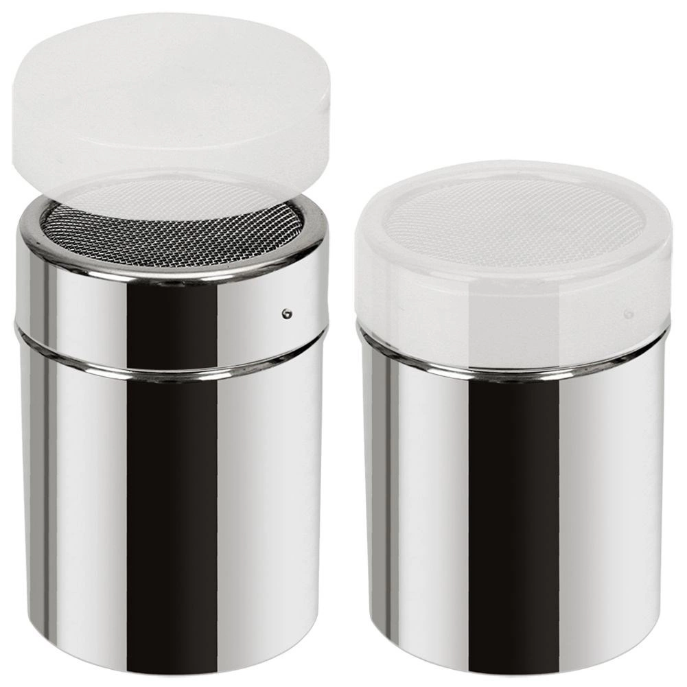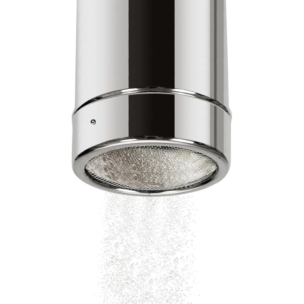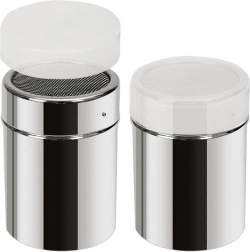 Tento zásobník o objemu 300 ml a průměru 7 cm je vyroben z kvalitní nerezové oceli, doplněn průhledným plastovým víčkem. Husté sítko zajišťuje precizní dávkování jemných sypkých surovin bez hrudkování a nepořádku. Skvělý pomocník pro zdobení dezertů, cappuccina nebo horké čokolády.