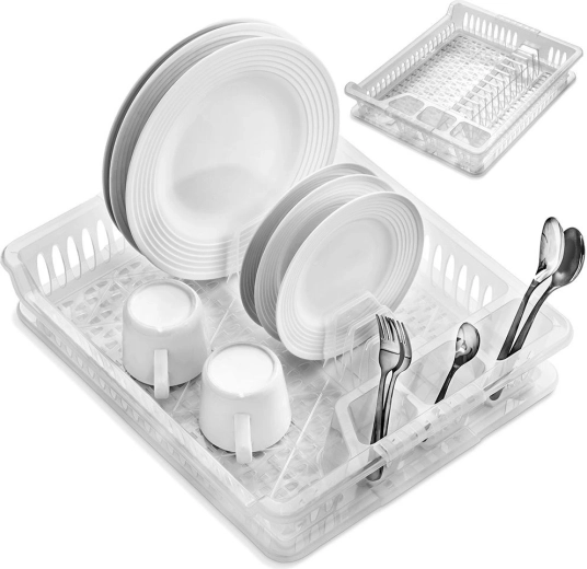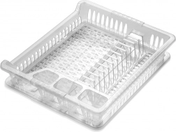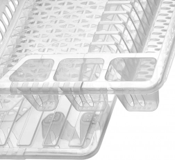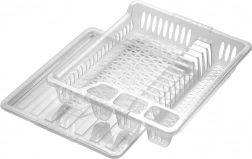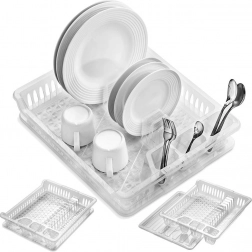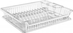 Kompaktní odkapávač na nádobí z kvalitního poloprůhledného plastu s vyjímatelnou odkapávací tácou. Nabízí místo pro 12 talířů, prostor pro hrnky a misky a 3 přihrádky na příbory. Udrží kuchyňskou linku čistou a suchou, je snadno omyvatelný a ladí s moderními i klasickými kuchyněmi.