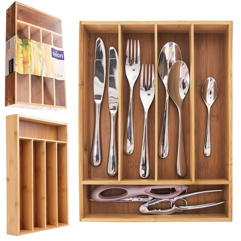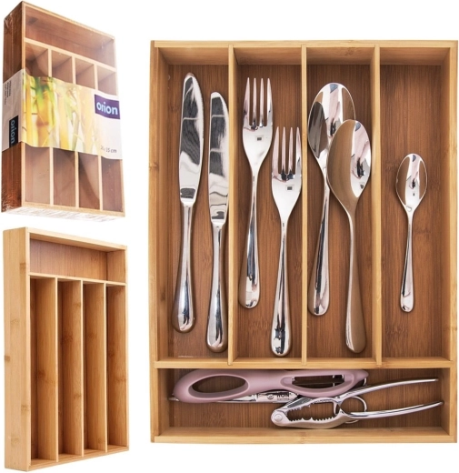 Praktický bambusový organizér do zásuvky o rozměrech 35 × 26 × 5 cm zajistí, že budou vaše příbory i kuchyňské náčiní vždy přehledně uložené. Vyroben z přírodního bambusu, který je odolný a vlhkosti vzdorný, nabízí pět přehledných přihrádek pro vidličky, nože, lžičky a drobné kuchyňské nástroje. Univerzální velikost pasuje do většiny zásuvek a snadné čištění zajistí bezproblémovou údržbu.