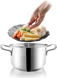 Skládací pařák z kvalitní nerezové oceli umožňuje šetrné vaření v páře, při kterém si potraviny zachovají chuť, barvu a živiny. Nastavitelný průměr 14–23 cm zajišťuje kompatibilitu s různě velkými hrnci, takže připravíte vše od zeleniny přes ryby až po knedlíky.