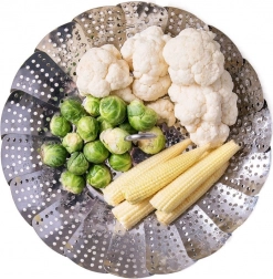 Perforované lístky zajišťují rovnoměrnou cirkulaci páry pro křupavou zeleninu, šťavnaté ryby i nadýchané knedlíky.
