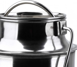 Tato odolná nerezová kanka na mléko o objemu 2,5 l je spolehlivým pomocníkem pro každodenní používání. Pevná konstrukce z nerezové oceli zajišťuje odolnost vůči korozi a dlouhou životnost, víčko s úchytem chrání obsah před nečistotami a hmyzem. Díky praktickému madlu se pohodlně přenáší doma, na chatě i při kempování.