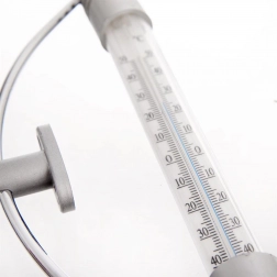 Praktický venkovní teploměr pro přesné sledování teploty na balkoně, terase či v zahradě. Nabízí čitelné měřítko od -40 °C do +50 °C, je odolný vůči povětrnostním vlivům a snadno se montuje. Moderní design v nerezové oceli se stříbrným povrchem skvěle zapadne do každého exteriéru.