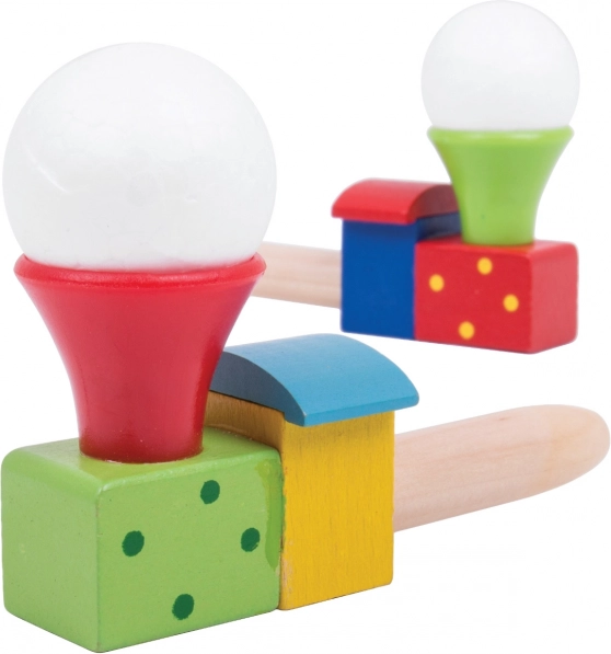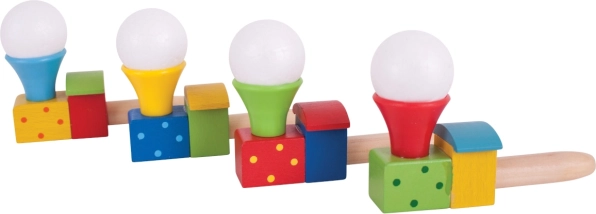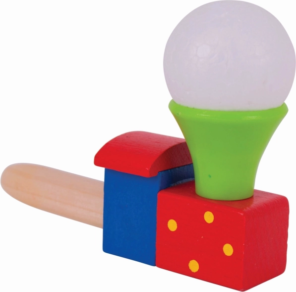 Tato barevná dřevěná lokomotiva s balónkem promění obyčejné fouknutí v malý zázrak. Děti trénují dech a kontrolu nad dechem, sledují, jak se bílý míček vznáší nad komínkem, a rozvíjejí tak koordinaci i trpělivost. Ideální pro krátké hravé pauzy i delší soustředěnou zábavu.