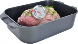 Spolehlivý kuchyňský teploměr s nerezovou sondou 12 cm měří přímo uvnitř masa a zajistí, že pečeně, drůbež i steaky budou připravené přesně tak, jak máte rádi. Čitelný analogový ciferník umožňuje rychlý odečet teploty v rozmezí 50–90 °C, ideální pro většinu mas a teplých pokrmů.