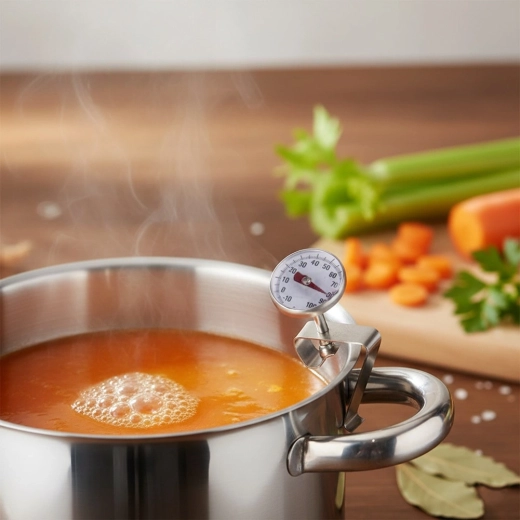 Snadno připněte teploměr na okraj hrnce či nádoby a měřte průběžně bez držení v ruce – ideální pro vývary, sirupy nebo ohřev mléka.