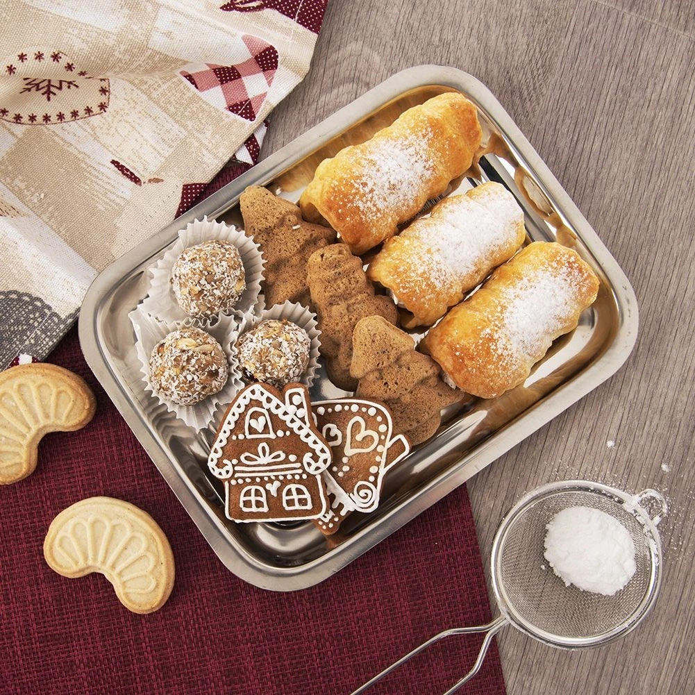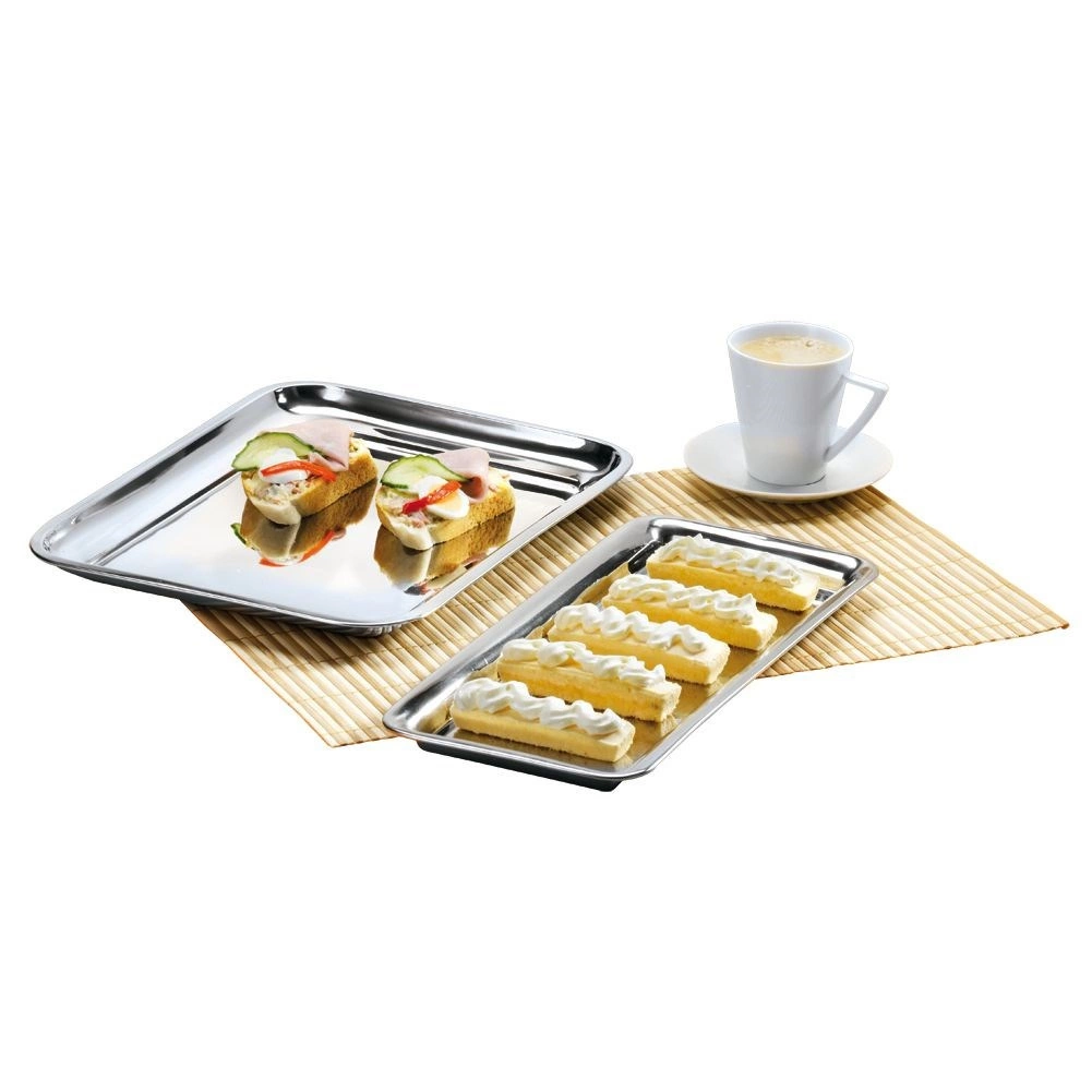 Elegantní nerezový tác v obdélníkovém tvaru o rozměrech 21,5 × 16,5 × 1,5 cm je ideální pro každodenní i slavnostní servírování. Díky kvalitní nerezové oceli s vysokým leskem, pevné konstrukci a lehce zvýšeným okrajům se pohodlně přenáší, skvěle vypadá a snadno čistí. Perfektní do domácnosti i gastronomie.