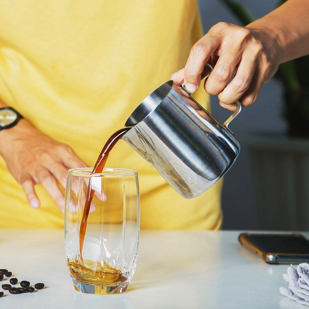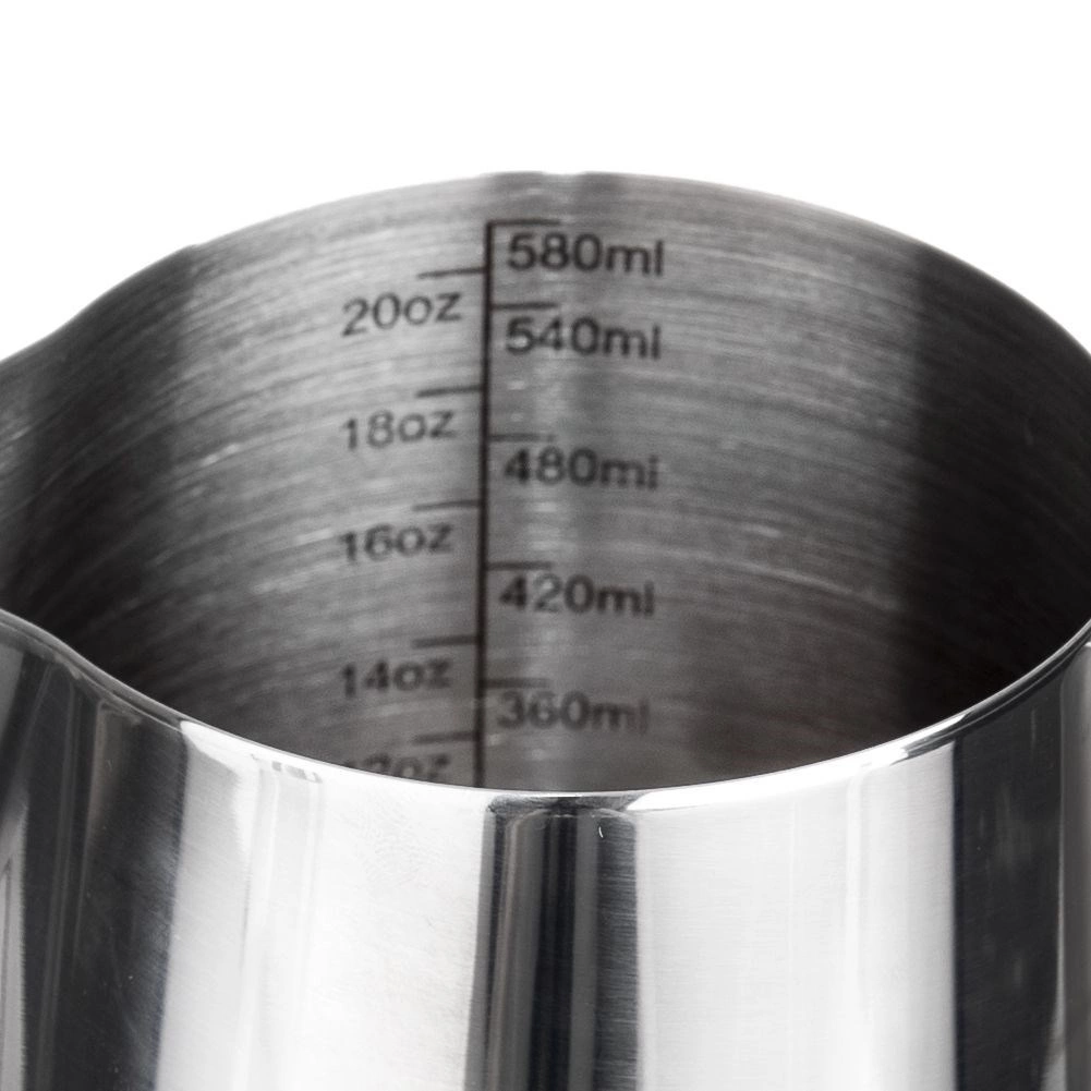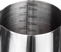 Stylový a funkční pomocník pro baristy i milovníky kávy. Džbánek je vyroben z kvalitní nerezové oceli, která se snadno čistí, je odolná proti korozi a skvěle vede teplo. Vnitřní rysky po 60 ml umožňují přesné odměření mléka či smetany pro dokonalé cappuccino nebo latte.