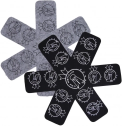 Vyrobeno ze syntetického vlákna v černé a šedé barvě (zasíláme náhodně, bez možnosti výběru). Přepážky jsou lehké, odolné a skladné, umožní bezpečné stohování i úsporu místa ve skříňkách. Pro správné použití nepokládejte na horké ani znečištěné povrchy.