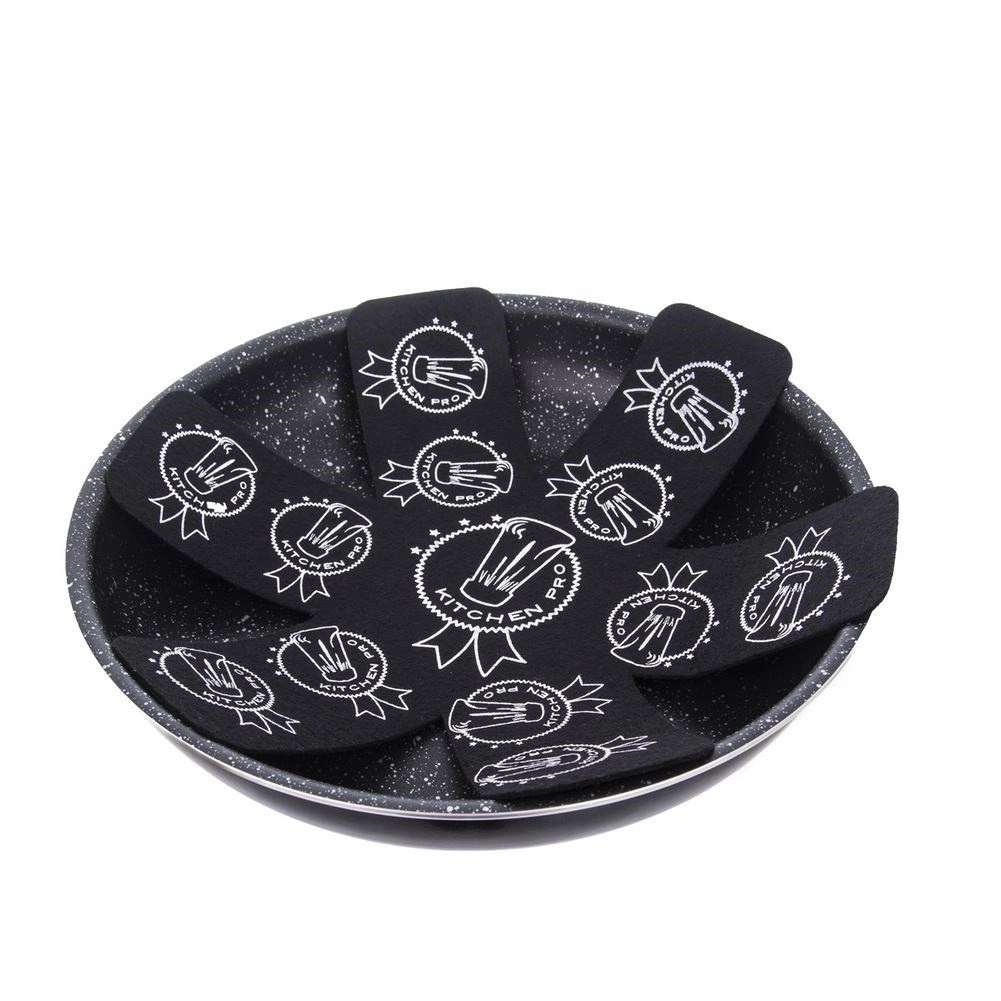 Měkký filc chrání nepřilnavé povrchy při ukládání nádobí na sebe a prodlužuje jeho životnost.