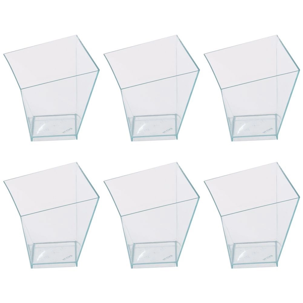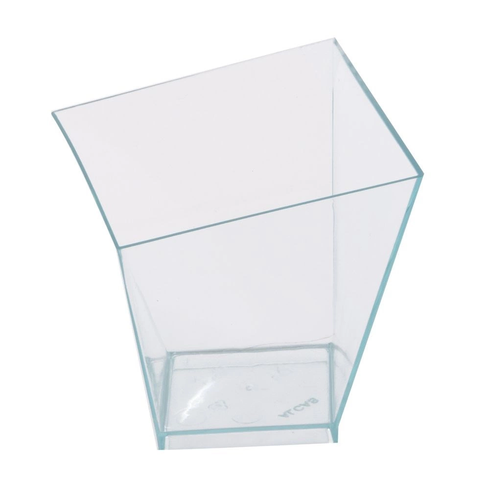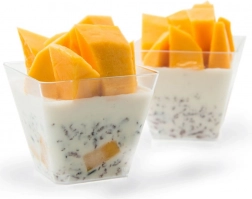 Elegantní čtvercové pohárky s moderně zkoseným okrajem vyniknou při servírování panna cotty, tiramisu, mousse, pudinků, salátů i slaných tapas. Průhledné stěny efektně ukážou vrstvy a barvy, takže se skvěle hodí na sladké stoly i rauty.