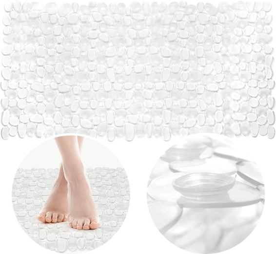Praktická protiskluzová podložka do sprchy nebo vany zajistí stabilní krok i na mokrém povrchu. Díky desítkám přísavek pevně drží na místě, zatímco jemná, oblázková textura poskytuje pohodlí při sprchování i koupeli. Průhledné provedení je nenápadné a elegantně splyne s jakýmkoli stylem koupelny.