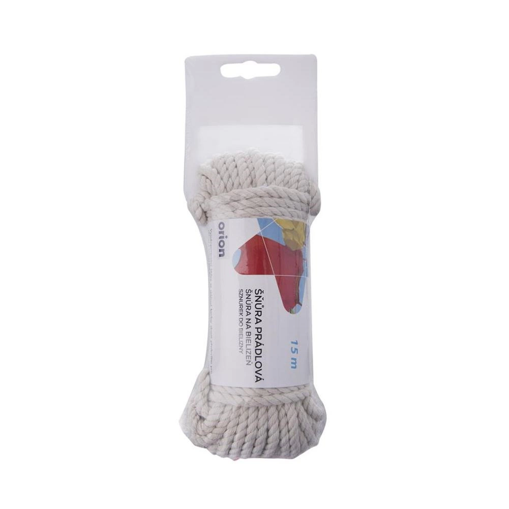 Praktická bavlněná šňůra na prádlo o délce 15 m a průměru 4 mm usnadní sušení oblečení na balkoně, zahradě i na cestách. Vyrobena z přírodní bavlny v bílé barvě, je odolná vůči počasí a pravidelnému používání, nabízí dostatek prostoru pro větší množství prádla a je ekologickou alternativou k plastovým šňůrám.