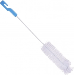Dlouhý kartáč na láhve o délce 41 cm s modrou rukojetí a bílým hustým vláknem účinně čistí vnitřky úzkých nádob. Díky štíhlému tvaru snadno dosáhne až na dno a do hrdla. Má praktický háček na zavěšení a je lehký, ale zároveň odolný. Ideální pro láhve, vázy, karafy i dětské lahvičky.