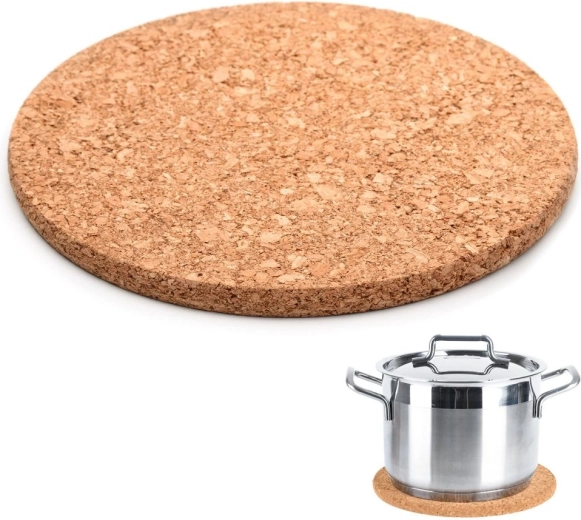 Stabilní kruhový tvar a protiskluzové vlastnosti korku umožňují bezpečně odložit hrnce a pánve přímo ze sporáku.