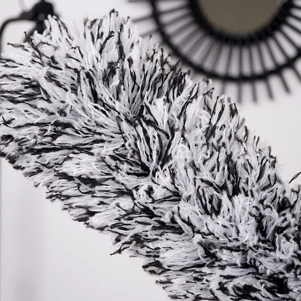Husté šedo-bílé mikrovlákno působí jako magnet – prach přitahuje, uzamyká ve vláknech a nevíří ho do vzduchu. Ideální na nábytek, elektroniku i dekorace.