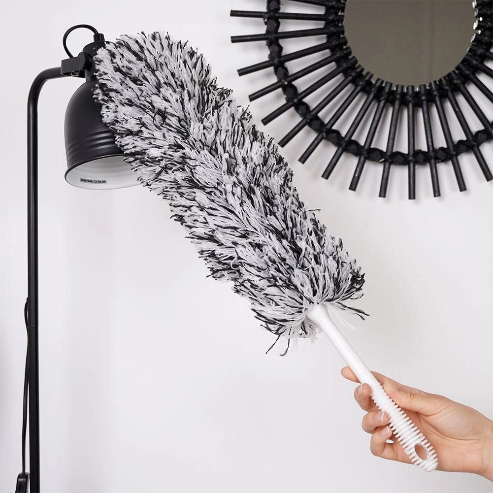 Tato antistatická prachovka je ideální pomocník pro rychlé a šetrné odstranění prachu z televizí, nábytku, lamp, žaluzií i parapetů. Husté mikrovlákno v šedo-bílém provedení efektivně zachycuje prach a alergeny, aniž by zvedalo nečistoty do vzduchu. Díky nízké hmotnosti a dlouhému dosahu (55 cm s rukojetí) vyčistíte i úzké spáry a vyšší police.