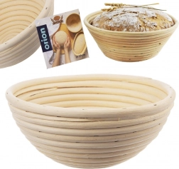 Kulatá ratanová ošatka na chléb o průměru 19 cm pro bochník cca 0,7 kg zajistí správné kynutí, pevný tvar a dekorativní spirálový vzor na kůrce. Vyrobeno z přírodního ratanu, vhodné pro domácí i profesionální pečení.
