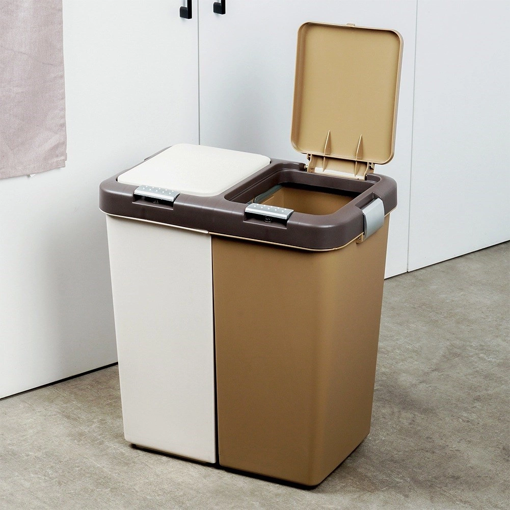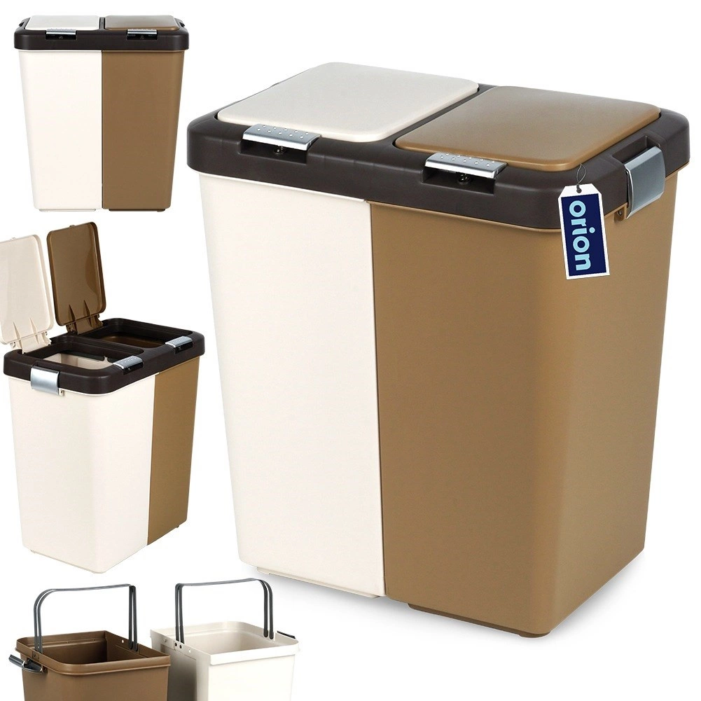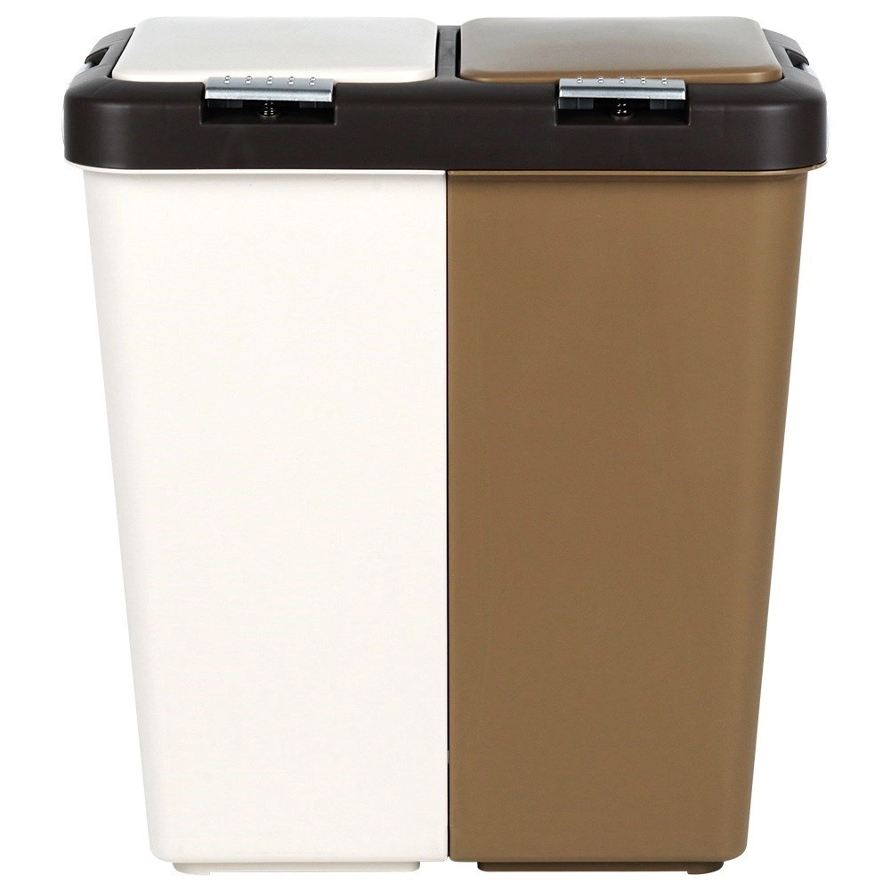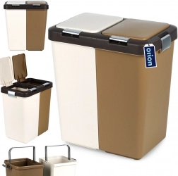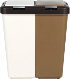 Koš je vyroben z kvalitního a odolného plastu v nadčasové kombinaci bílé a hnědé, takže se hodí do kuchyně, kanceláře, čekárny i pracovny. Dvě komory v jednom těle šetří místo, které by jinak zabraly dva samostatné koše.
