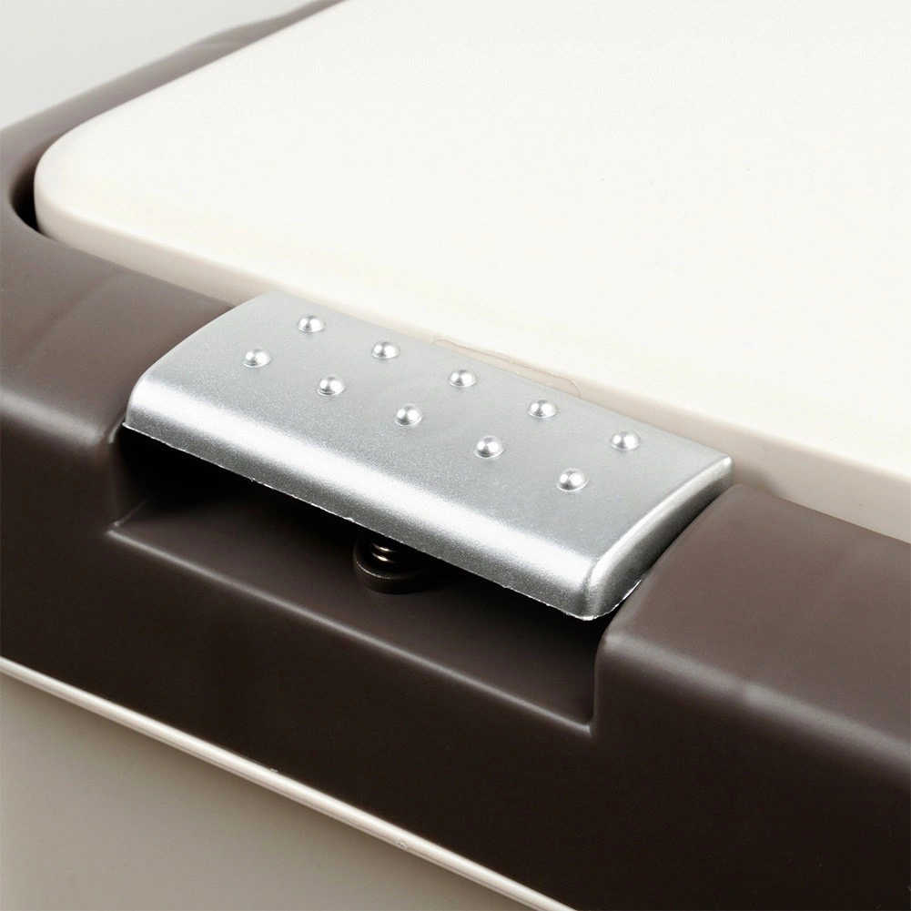 Kvalitní plast v bílo‑hnědé kombinaci odolá každodennímu provozu, zatímco úzké obdélníkové tělo šetří místo v menších prostorech.