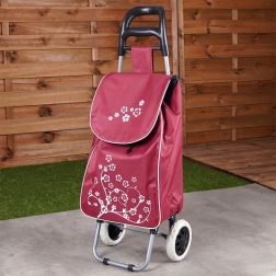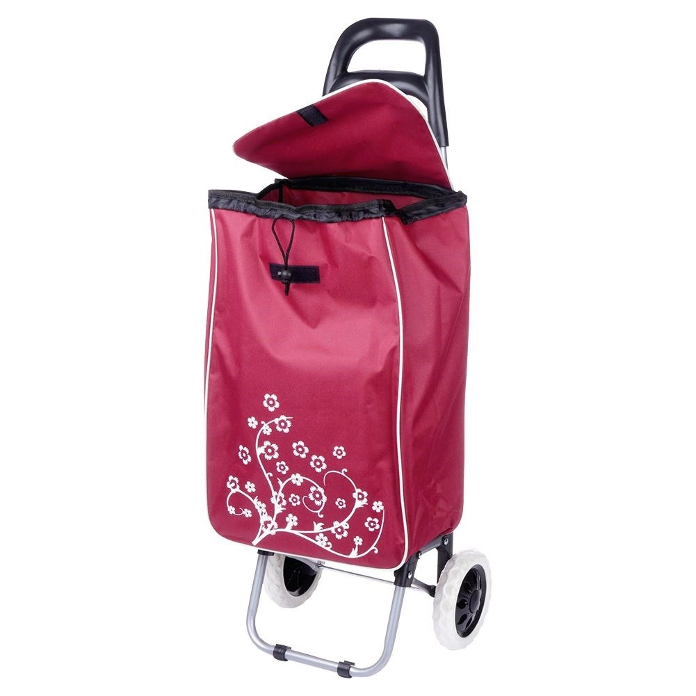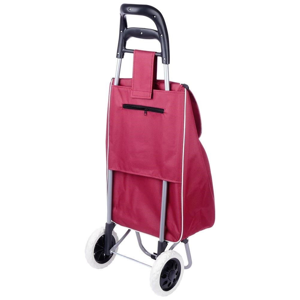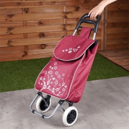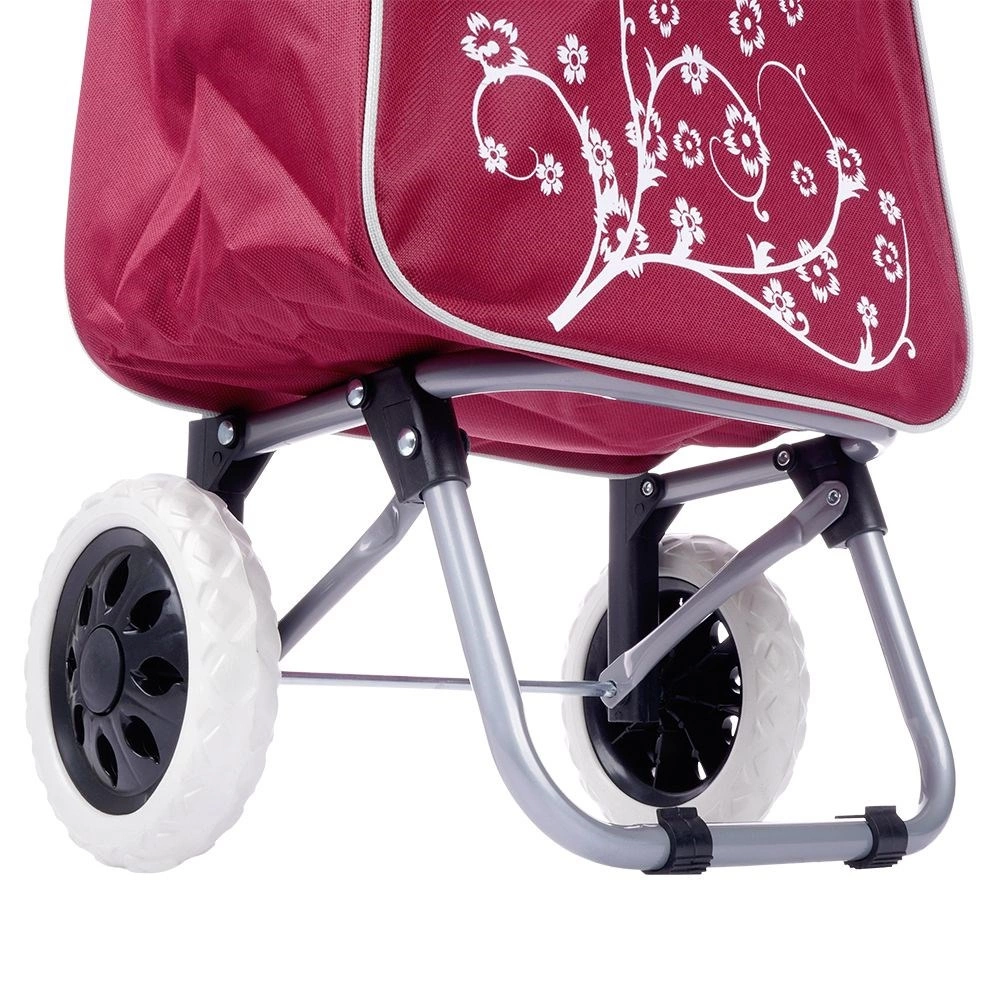 Nákupní vozík s prostornou 30l taškou v bordó provedení je ideální volbou pro pohodlný nákup bez nošení těžkých tašek v ruce. Lehký, a přitom stabilní rám se dvěma velkými koly zajišťuje hladký a tichý chod i po nerovném povrchu. Taška se stahováním na šňůrku a překlopnou klopou bezpečně chrání obsah, zadní zipová kapsa je praktická na klíče, peněženku či telefon.