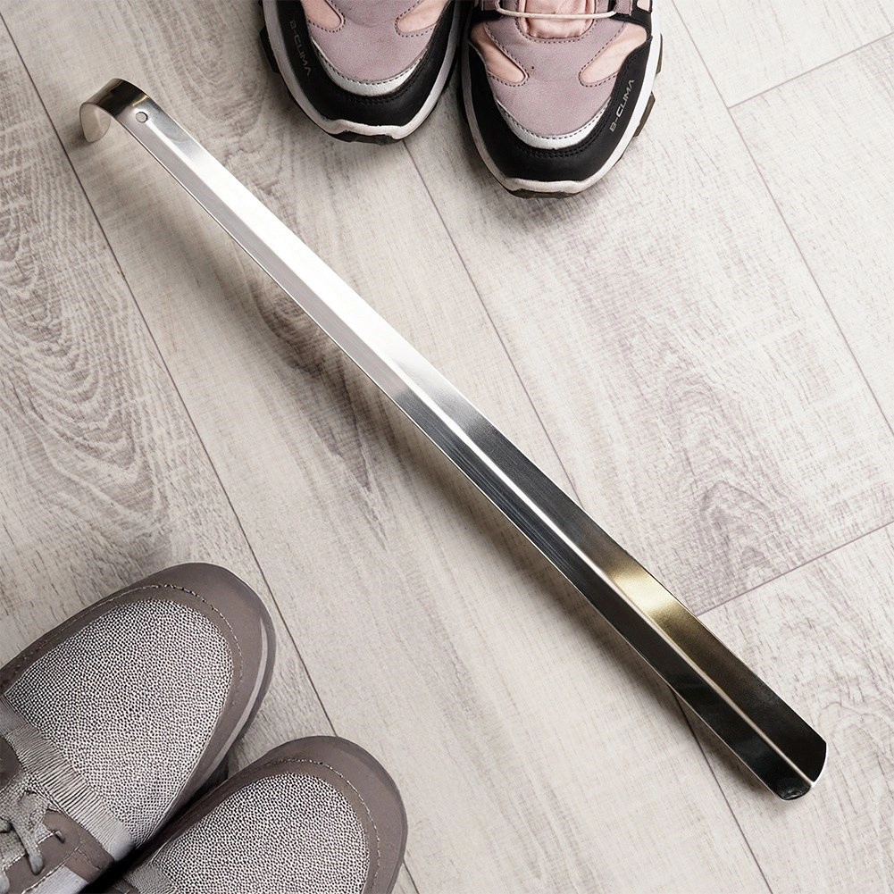 Usnadněte si každodenní obouvání s dlouhou nerezovou lžící na boty o délce 51 cm. Díky prodlouženému dosahu nazujete obuv bez zbytečného ohýbání a bez mačkání patní části. Hladký, leštěný povrch umožňuje plynulé sklouznutí paty do boty a zamezuje oděru.
